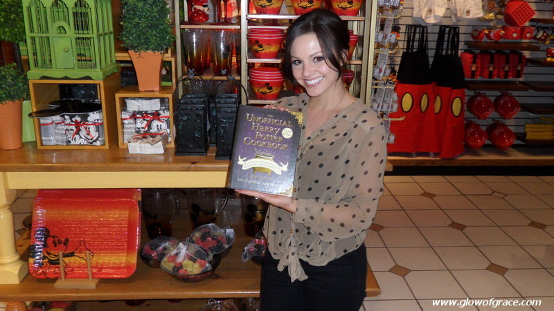 Just the other night, he wanted to take me on a date to Downtown Disney (Disney is another love of mine since I grew up about 25 min down the street from Disneyland) to have a nice dinner and get the cookbook I drooled over last time we wandered around down there.  So we walked straight in to Mickey’s Pantry, a charming store with all of the Disney themed kitchen supplies you could imagine, and picked me up a copy of The Unofficial Harry Potter Cookbook by Dinah Bucholz.