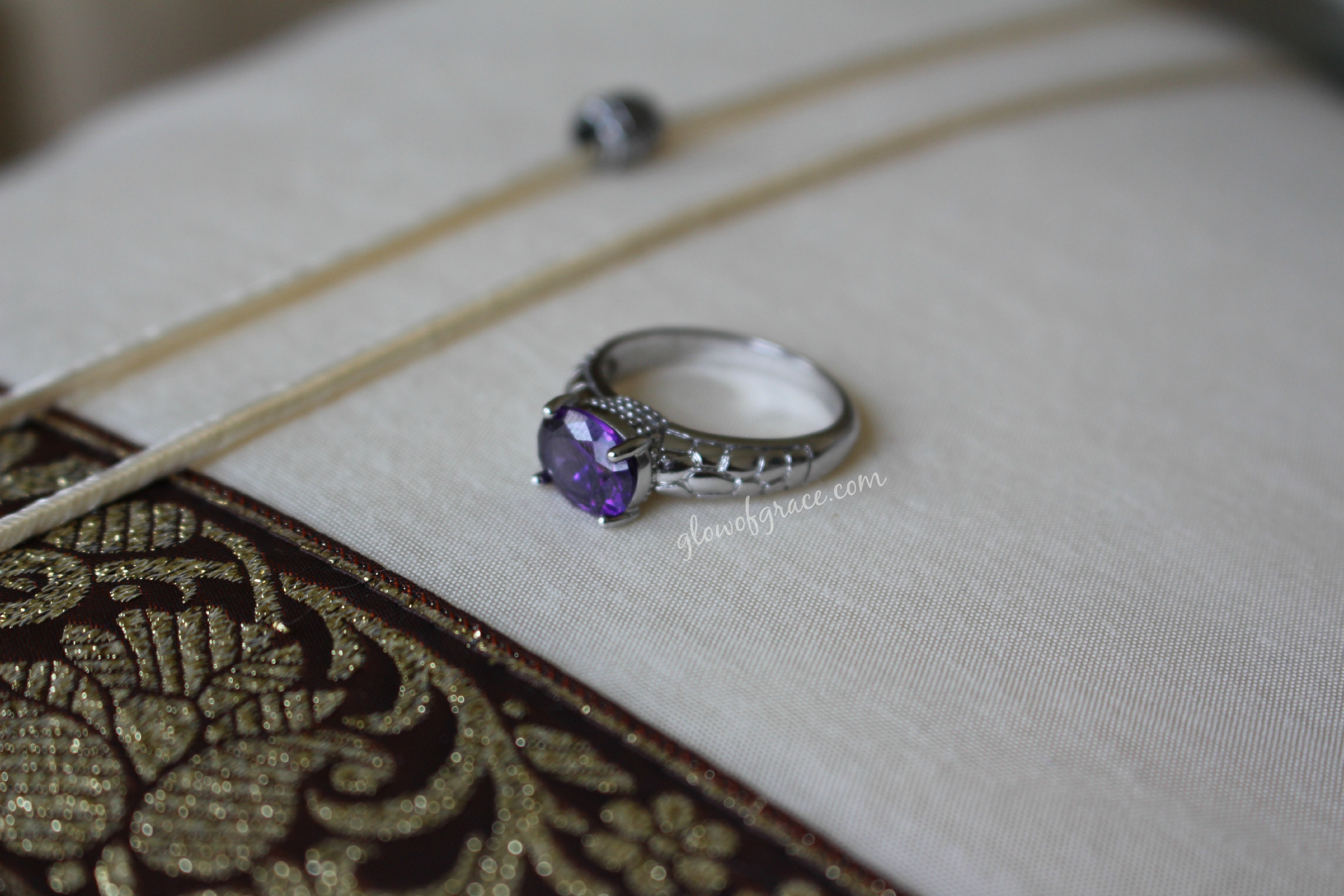 It was a really fun experience, but it does require either some patience or some serious candle burning. Kyle was eager to see what the prize was, so he took it on as his duty to watch over our candle and see if it was ready. He’s the one who ultimately pulled out the prize and found that the wax felt nice on that hands (almost like a massage oil), but that some of it had leaked into the package. The appraisal sheet was pretty oily and the ring required some cleaning as well. Once he had it all wax-free, I was able to look at the ring and it was quite nice even though it was the least expensive prize. The major drawback for me was the size. This ring is MASSIVE. Now, I know I have super tiny fingers and most costume jewelry rings don’t fit me, but this fit on Kyle’s ring finger. And he’s not a small person. Not a huge deal since it was only worth $10, but I would have definitely had to get it resized if it had been worth more money.